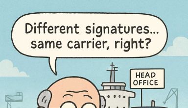 Sometimes, a little phrase like “on behalf of” saves a lot of trouble — as long as it clearly links back to the beneficiary named in the credit. Here’s a case where the bill of lading shows the shipper acting on behalf of the beneficiary. Is that acceptable? _______ Question Dear Mr. Old Man, The LC states that the shipper …