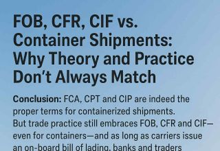 Dear friends, one of the recurring debates in Incoterms is whether FOB, CFR and CIF should ever be used for containerized shipments. The theory says “no,” but in practice, traders and banks keep using them every day without issue. Let’s look at why the theory clashes with practice, and what happens with FCL and LCL cargoes.