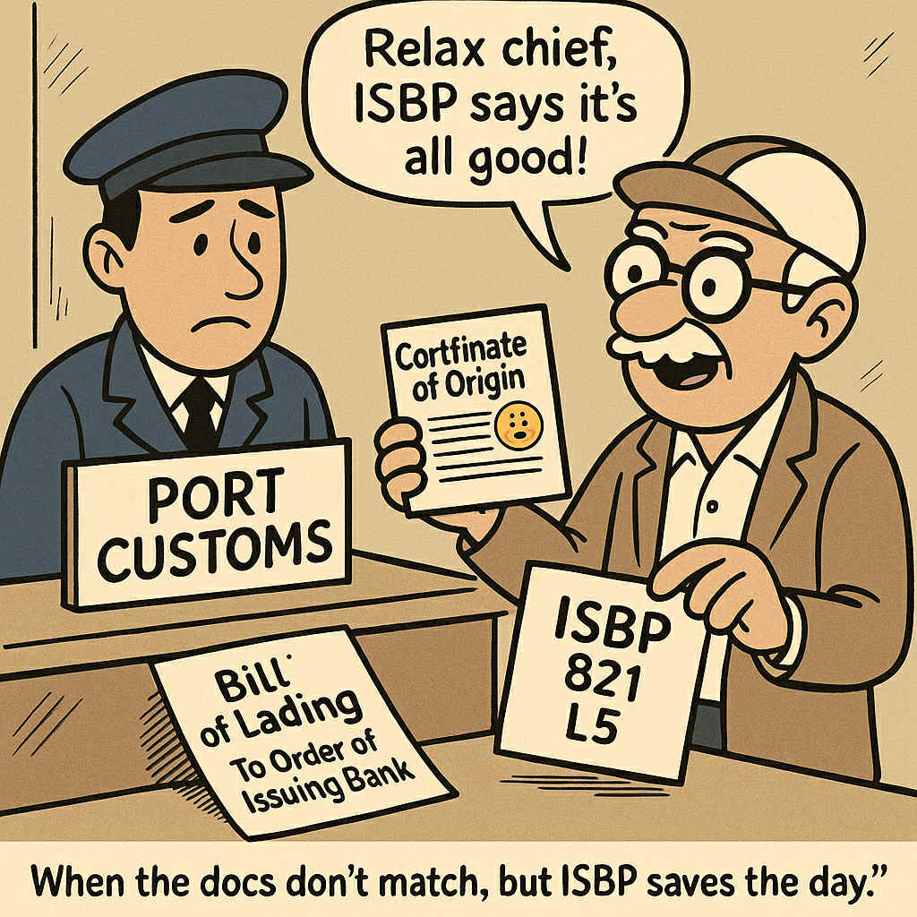 Mr Old Man Q&A LC Document Compliance: Consignee Details on Certificate of Origin vs Bill of Lading By Mr Old Man Posted on 8 seconds ago 5 min read 0 0 0 Share on Facebook Share on Twitter Share on Google+ Share on Reddit Share on Pinterest Share on Linkedin Share on Tumblr Understanding ISBP 821 L5 — A Practical Q&A In trade finance, it’s not uncommon for exporters and document checkers to wonder how far they can “stretch” consignee information on different documents without triggering a discrepancy — especially when a bill of lading is issued “to order” and the certificate of origin (C/O) needs to name a consignee. This question from a colleague in the field touches on exactly that situation. Let’s unpack it with reference to ISBP 821, focusing on paragraph L5 — an essential tool for anyone dealing with documentary credits under UCP 600. Question: Hello Mr. Old Man, Hope you are doing well. I need your explanation regarding a potential discrepancy between the consignee information on a bill of lading and a certificate of origin (C/O). Given that the LC requires the bill of lading to be: Consigned to the applicant, or Issued “to order of issuing bank,” and the consignor on the certificate of origin could be a third party not named in the LC… What is the correct consignee to put on the certificate of origin in this case? And would it lead to a discrepancy? Do we need to amend the LC to avoid this? Thanks and best regards, Muna Najja ______ Answer: Dear Muna Najja, Thank you for your thoughtful question. To address your concern, we can rely on ISBP 821, paragraph L5, which provides clear guidance on how consignee information may appear on a certificate of origin when the bill of lading is issued “to order.” According to ISBP 821 L5: When a credit requires a transport document to be issued “to order,” “to the order of shipper,” “to order of issuing bank,” “to order of nominated bank (or negotiating bank)” or “consigned to issuing bank,” a certificate of origin may show the consignee as any entity named in the credit except the beneficiary. In the case of a transferred credit, the first beneficiary may be stated to be the consignee. Who counts as “entities named in the credit”? Commonly, these include: Applicant (importer) Issuing bank Advising bank Nominated/Negotiating bank Confirming bank (if specifically named) Notify party or any other entity expressly mentioned in the LC Practical Tip: While naming a nominated or confirming bank as the consignee on a certificate of origin is not practical for customs purposes, it is acceptable under ISBP. In practice, the consignee on the C/O is usually the applicant or simply “to order.” So, is there a discrepancy? No. As long as the consignee on the C/O is an entity named in the LC (other than the beneficiary), there is no discrepancy, even if the consignee differs from the bill of lading. Should the LC be amended to avoid this? No amendment is necessary. ISBP 821 provides sufficient clarity, so long as document checkers and the issuing bank are aligned with its provisions. Hope this helps! Best regards, Mr. Old Man