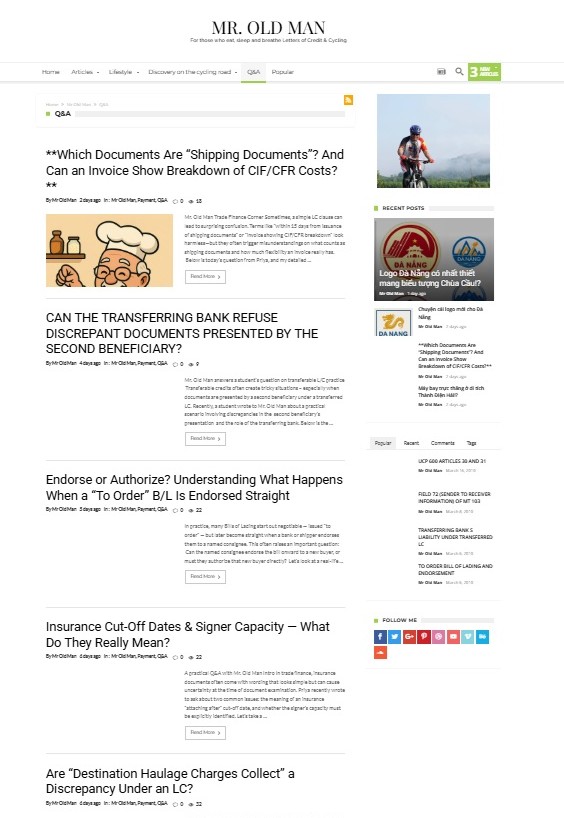 Articles Lifestyle Mr Old Man Payment Q&A WWW.MROLDMAN.NET – NIỀM VUI CỦA NGƯỜI ĐÃ RỜI TRẬN CHIẾN By Mr Old Man Posted on 10 hours ago 5 min read 0 0 10 Share on Facebook Share on Twitter Share on Google+ Share on Reddit Share on Pinterest Share on Linkedin Share on Tumblr Năm 2013, từ nền tảng blog WordPress, Mr. Old Man lập nên website www.mroldman.net với slogan quen thuộc: For Those Who Eat, Sleep and Breathe Letters of Credit – dành cho những ai thật sự “ăn, ngủ và thở” cùng thư tín dụng. Mười hai năm qua, Mr. Old Man đã chia sẻ 1.853 bài viết – chủ yếu là các Q&A và bài viết tiếng Anh về thanh toán quốc tế và tài trợ thương mại. Phần còn lại là những bài tiếng Việt kể chuyện những chuyến đạp xe, cùng đôi ba cảm nhận vụn vặt về cuộc đời và xã hội, để website bớt khô khan. Trang web giúp Mr. Old Man – người đã “rời trận chiến” hơn bốn năm – vẫn có việc để bận rộn mỗi ngày. Và với ông già này, đó chính là niềm vui. Hôm nay ghé lại mục Statistics, Mr. Old Man thật sự bất ngờ khi thấy lượng truy cập vào www.mroldman.net trong 30 ngày qua (từ 03/11 đến 02/12): 69.9K người dùng ghé thăm 119.5K lượt xem Điều thú vị hơn nữa là trang web đã đón những bạn đọc đến từ hàng trăm quốc gia – dù vô tình, hữu ý, hay lạc vào vì Google. Dưới đây là Top 10 quốc gia có lượng truy cập cao nhất: Mỹ – 14.463 Brazil – 14.250 Singapore – 4.222 India – 4.106 Vietnam – 3.813 (nhưng lại đứng đầu về lượt xem với 63.444 lượt!) Argentina – 1.788 France – 1.611 Indonesia – 1.428 United Kingdom – 1.427 Mexico – 1.185 Với lượng người đọc và lượt xem như vậy, Mr. Old Man cảm nhận rõ ràng rằng công việc mình đang làm vẫn còn giá trị. Xin gửi lời cảm ơn chân thành đến tất cả bạn đọc – dù bạn ghé vì công việc, tò mò, hay đơn giản chỉ muốn dạo bước cùng một ông già mê xe đạp và L/C. Một tin vui nho nhỏ: Tên miền và hosting đã được gia hạn và nâng cấp không giới hạn đến cuối năm 2033. Vậy nên bạn cứ yên tâm – trang web vẫn sẽ ở đó, để tra cứu bất cứ lúc nào cần. Thank you. Mr. Old Man